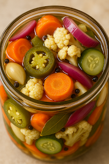 يُعرف هذا النوع من المخللات محليًا في المكسيك باسم "Escabeche" أو "Vegetales Encurtidos"، ويتميز بمذاق متوازن بين الحموضة والحرارة، وغالبًا ما يُستخدم لتحسين طعم الأطعمة الثقيلة أو الدهنية.