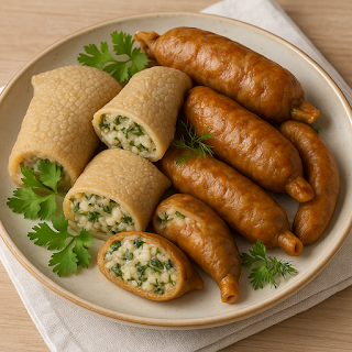 Mombar, or Fawaregh, is made using sheep or cow intestines. It’s meticulously cleaned, then filled with a mixture similar to that used for stuffed vegetables—typically rice, minced meat, herbs, and spices. In this Syrian version, we’re taking it up a notch with cheese and fresh greens like dill and coriander.